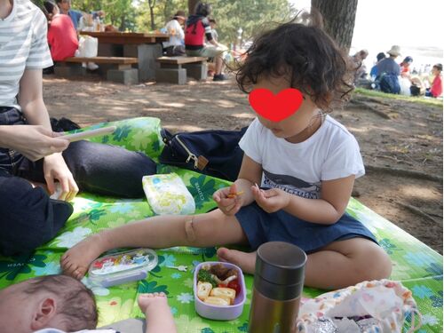 こんにちは!あやです! 昨日の続きです。 朝一で水族館に行き、1時間半ほど楽しんだ後、 海のほうへ向かいました。 昨日の記事↓ www.kurukurukazoku.com 海沿いの芝生の広場へ 海沿いの芝生の広場に到着したので、日陰にシートを敷きました。 混んでますが…