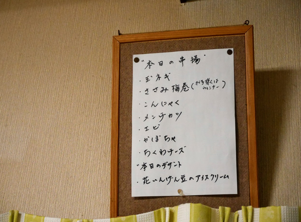 メニューはこんな感じ!こんにゃくの串カツなんて初めてでした!さくっとむにっとしててとてもおいしかったです( *´艸`)